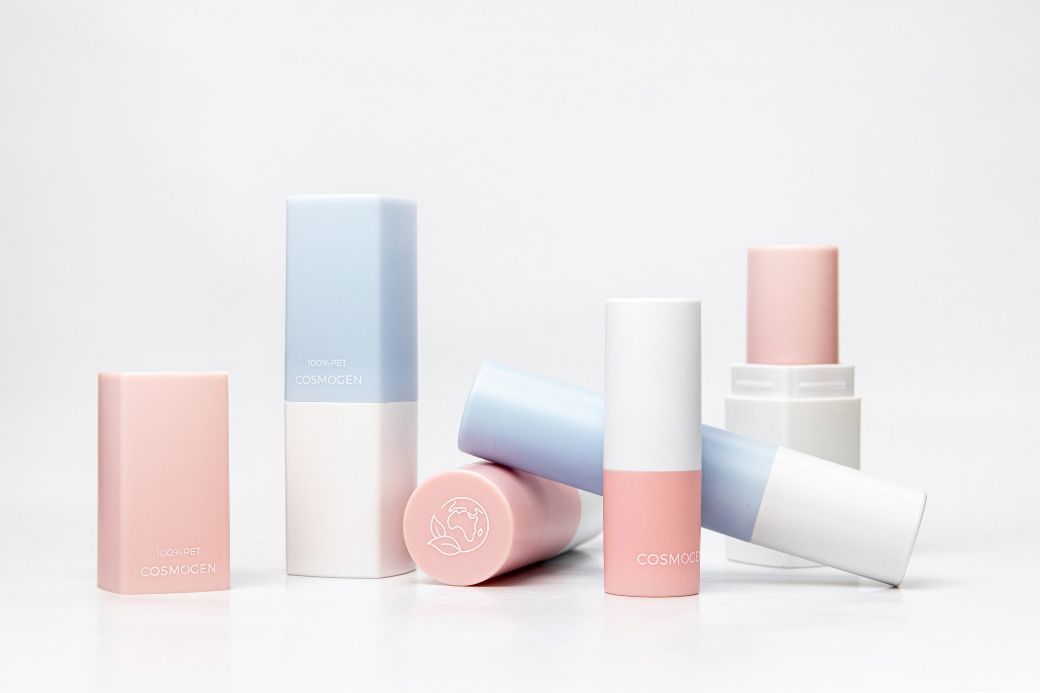 COSMOGEN’s PCR or r-PET sticks are suitable for lip balms, concealers, sun sticks, and other anhydrous formulas, demonstrating how recyclable single-material packaging can be adapted for modern beauty needs.